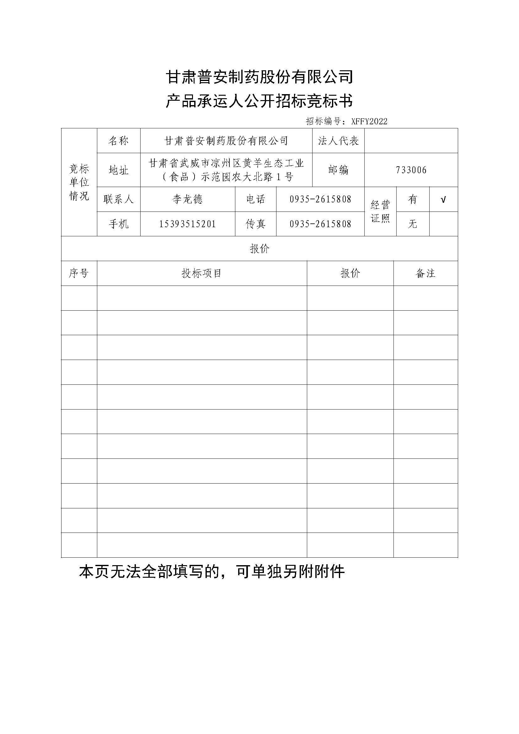 甘肅普安制藥股份有限公司宣肺止嗽合劑2022年承運人招標公告