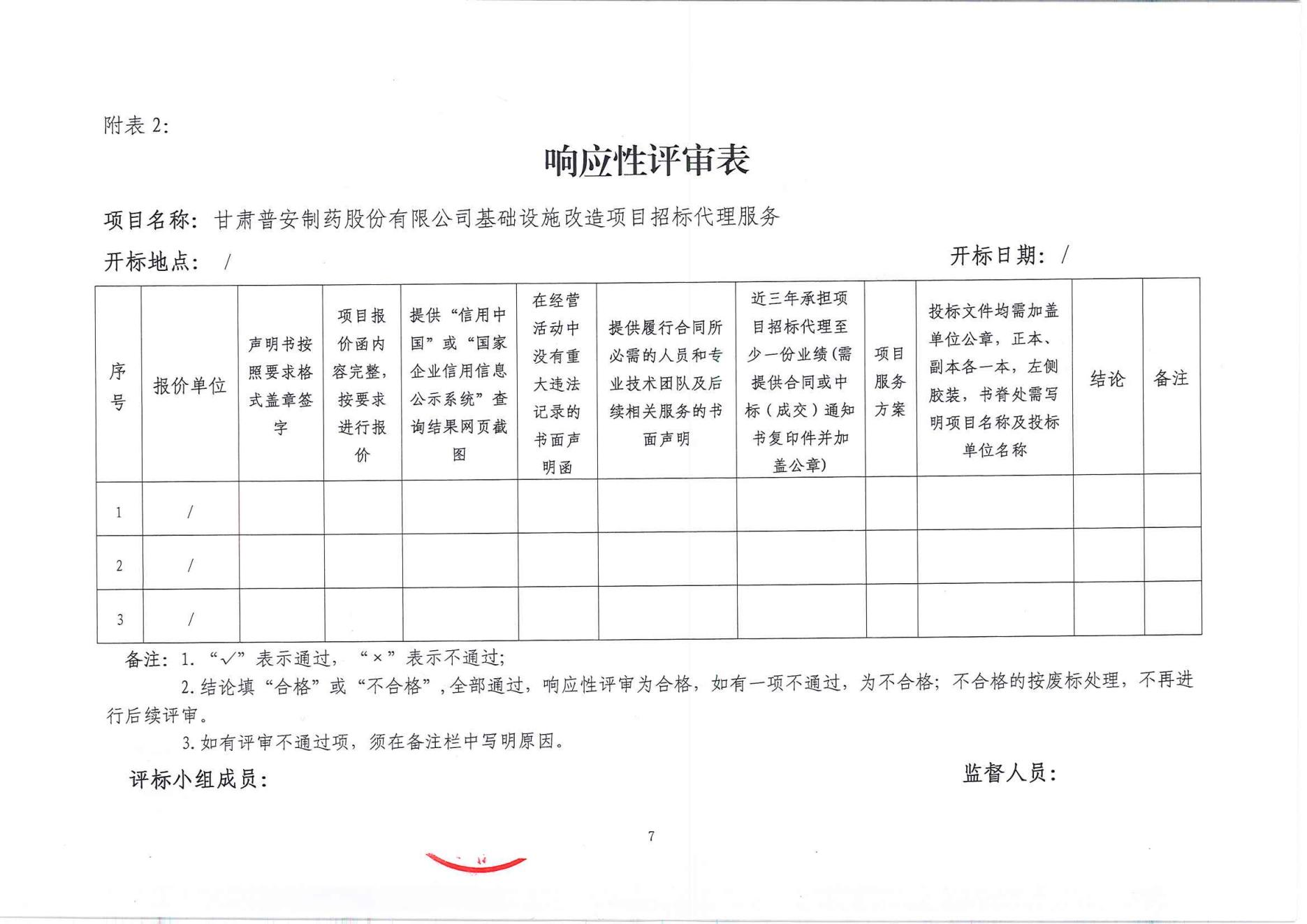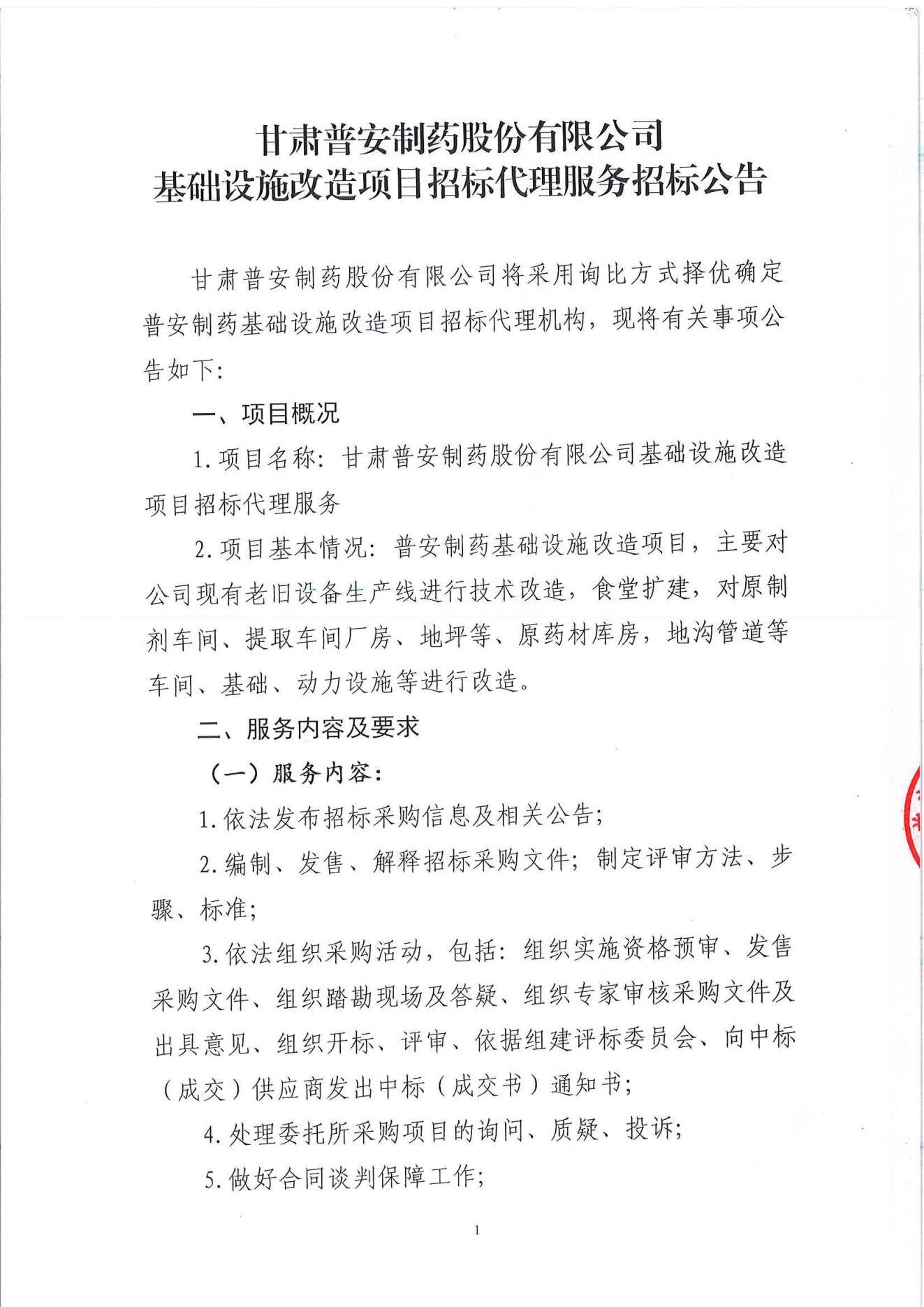 甘肅普安制藥股份有限公司基礎(chǔ)設(shè)施改造項(xiàng)目招標(biāo)代理招標(biāo)公告