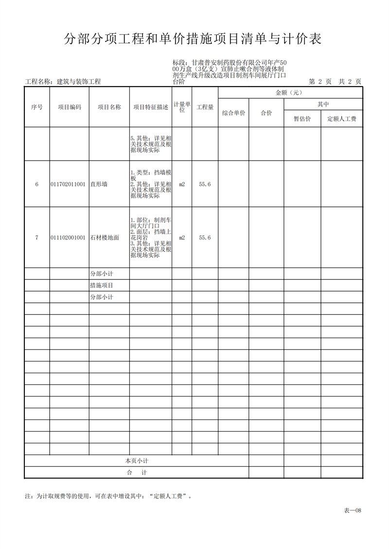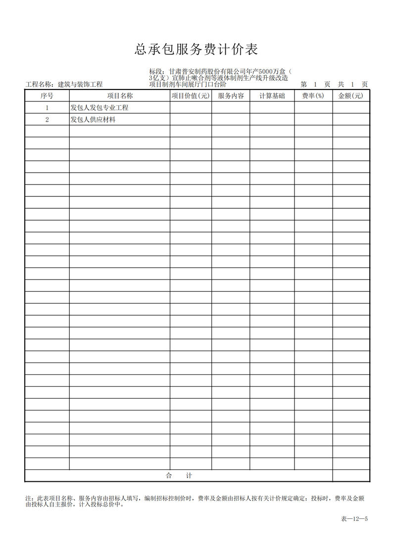 甘肅普安制藥股份有限公司年產5000萬盒(3億支)宣肺止嗽合劑等液體制劑生產線升級改造項目制劑車間展廳門口臺階工程招標公告