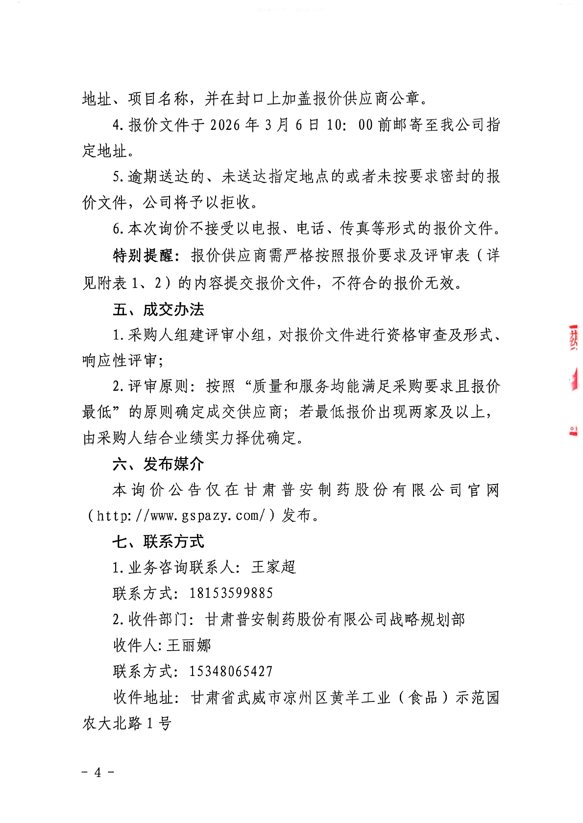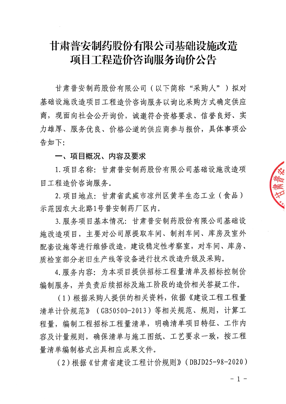 甘肅普安制藥股份有限公司基礎設施改造項目工程造價咨詢服務詢價公告